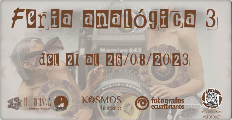 Bienvenidx a la tercera edición de la Feria analógica en Casa Mitómana, invernadero cultural, una cooperación entre la Asociación de Fotógrafos Ecuatorianos, Kosmos librería y El fotolaboratorio de vsfoto.net, todos con el mismo fin: ¡celebrar agosto, mes de la fotografía!